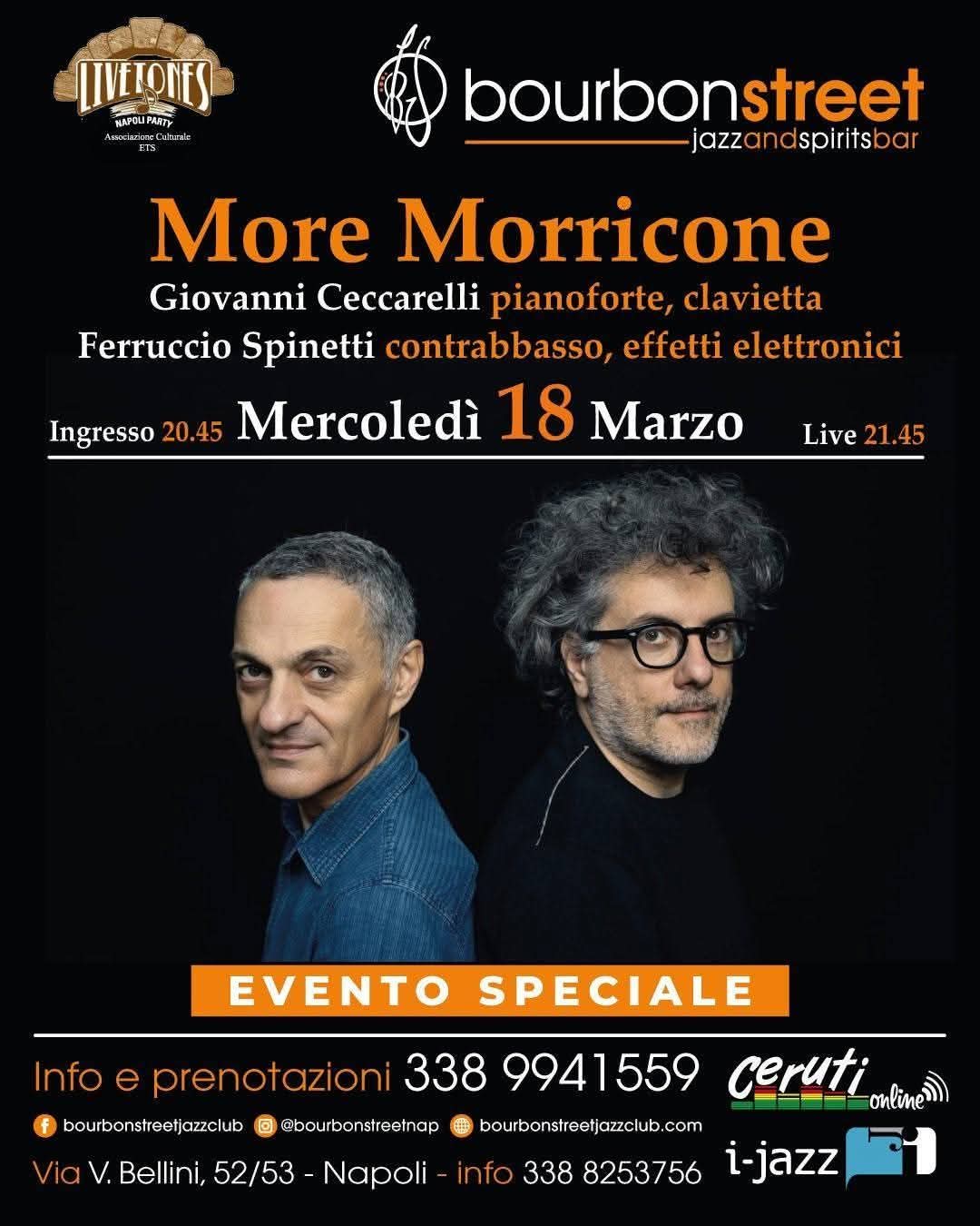 LIVE TONES NAPOLI ETS AL BOURBON STREET MERCOLEDÌ 18 MARZO: MORE MORRICONE – GIOVANNI CECCARELLI E FERRUCCIO SPINETTI