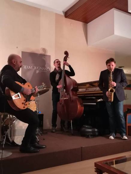 Un nuovo successo il concerto organizzato dal “Live Tones” nella hall dell’Albergo delle Terme di Agnano: I“Think of Three” con Alfonso Deidda “ special guest”. Il trio è formato da Alessandro Castiglione alla chitarra,Antonio Napolitano al contrabbasso e Massimo Del Pezzo alla batteria.