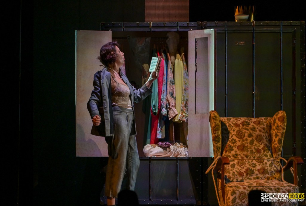 Tante le anime e le “vite” di Titina raccontate in scena, dai suoi inizi in teatro come il bambino “Peppiniello” di “Miseria e nobilita’” (lo spettacolo inizia proprio con Antonella Stefanucci nell’abito di scena di Peppiniello) sostituita poi dal fratello Eduardo appena, ormai giovinetta non era più credibile nelle vesti di un bambino piccolo, poi da sciantosa da varietà e attrice comica nelle compagnie minori con il marito Pietro Carloni, del quale era innamoratissima, poi madre innamoratissima del figlio che portava in scena ovunque andasse, poi sorella e spesso impegnatissima a fare da anello di congiunzione tra due personalità difficili e spesso in disaccordo come quelle di Eduardo e Peppino De Filippo, interprete meravigliosa di tantissime commedie di Eduardo nei ruoli indimenticabili scritti dal fratello apposta per lei come quello di “Filumena Marturano” fino al ritiro dalle scene per motivi di malattia.