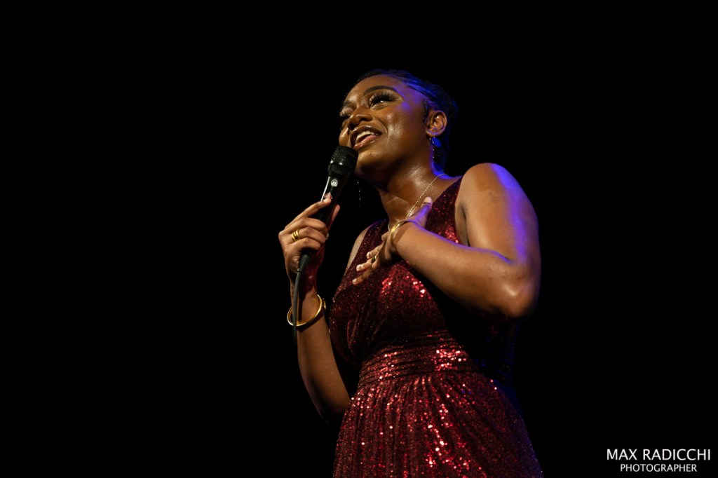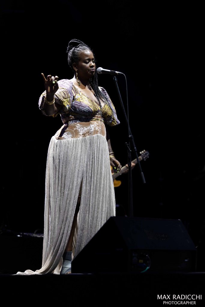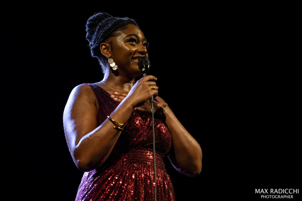 La seconda artista della serata è stata Somi . L’artista che nella sua musica unisce jazz e soul statunitensi alle sue radici africane ed è stata definita la Miriam Makeba dei nostri tempi, ha letteralmente conquistato il pubblico con la sua voce e le sue canzoni che parlano di giustizia sociale, di difesa dei diritti umani, di libertà, brani ispirati da mondi tanto diversi come Africa e America, legate tra loro da intensità espressiva e da una vocalità duttile ed estremamente naturale. Per il suo impegno sul tema dei diritti civili è stata invitata a esibirsi all’assemblea Generale delle Nazioni Unite in occasione della Giornata mondiale del ricordo delle vittime della schiavitù, e poi alla Carnegie Hall per la celebrazione del ventesimo anniversario della democrazia del Sud Africa.