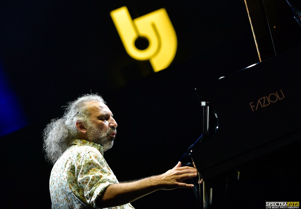 Il secondo concerto della serata è stato affidato ad una pianista eccezionale Hiromi, più volte ospite del festival a partire dai suoi esordi nel 2002, in vari progetti, sia in piano solo che con diverse collaborazioni con grandi musicisti come l’arpista Edmar Castaneda . Quest’anno una formula assolutamente nuova, con una band che fa del funky la loro essenza più pura , gli Sonicwonder, con i quali l’artista mette insieme sonorità jazz, rock, funky in una perfetta alchimia tra tutti i vari generi musicali che ha letteralmente conquistato il pubblico presente.