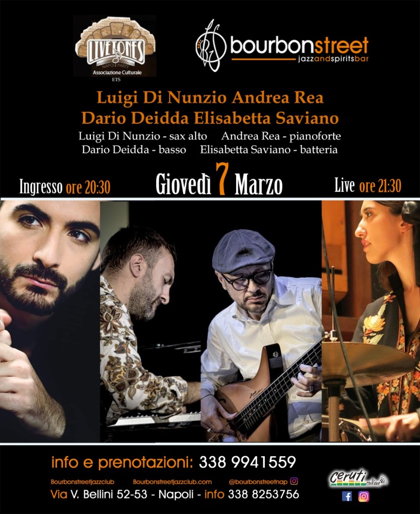 Venerdì 19 aprile alle ore 21.30 al Bourbon Street Via Vincenzi Bellini 52 un quartetto d’eccezione firmato Live Tones Napoli si riunisce per un evento davvero speciale all’insegna del jazz e dell’improvvisazione.