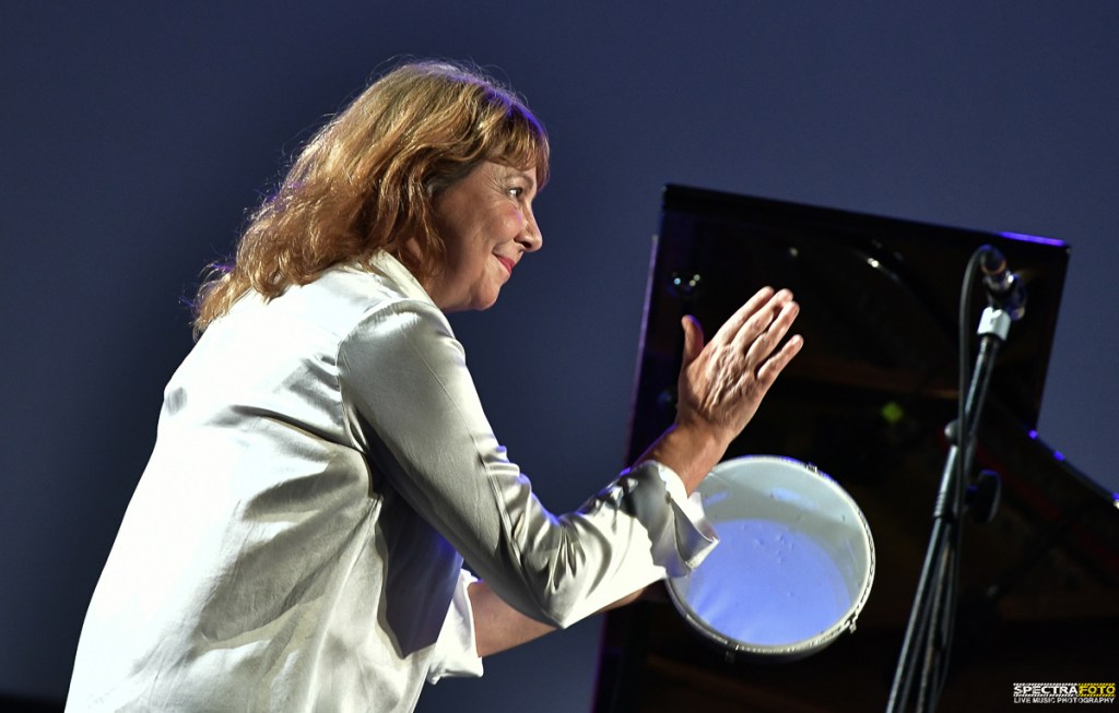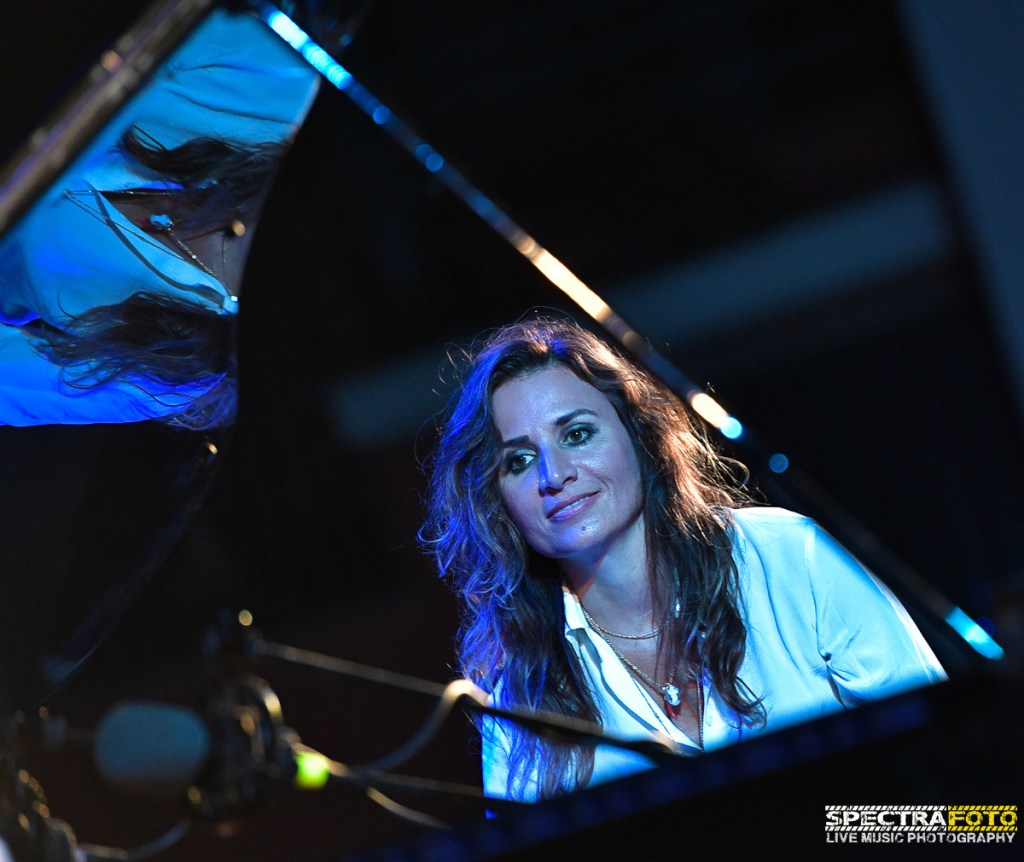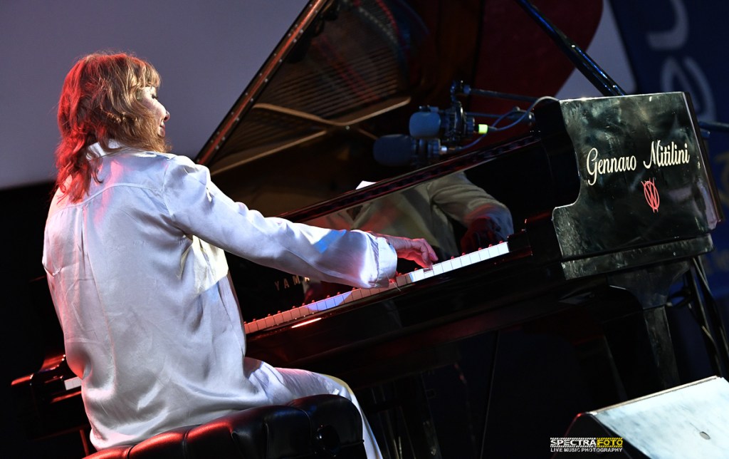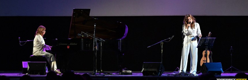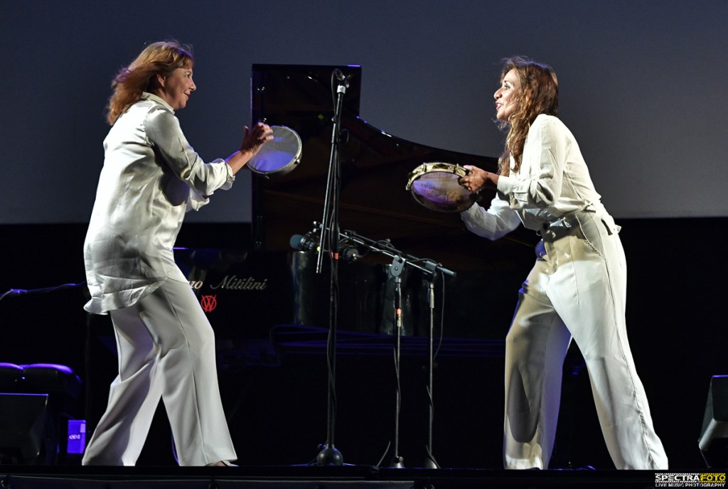 Dopo una intro di solo piano si parte con «Travessia» brano tratto dall’omonimo album del compositore, cantante e chitarrista brasiliano, Milton Nascimento. Poi «Bocca di rosa» di Fabrizio De André. Il pubblico sembra ipnotizzati dal suono del pianoforte della Marcotulli e dalla particolarità della voce della Civello. Le due musiciste, tra sperimentazioni e virtuosismi, appassionano, stupiscono e fanno divertire. Un’ora è mezza di concerto, con rivisitazioni di classici come “Il muro dei ricordi” nella bellissima versione di Jannacci, “Metti una sera a cena” o brani di Chiara Civello come “Resta”, fino al doppio omaggio a Pino Daniele con “L’ironia di sempre” e “Anima” fino al bis «Io che amo solo te» di Sergio Endrigo che il pubblico ha accolto con un lunghissimo applauso.