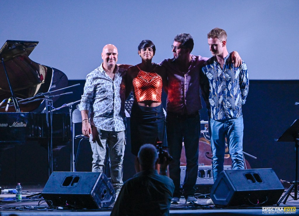 Il 15 luglio è stato caratterizzato da due set che hanno messo in luce diverse sfumature del jazz. Alle 12.30, Giovanni Mirabassi e Rosario Giuliani hanno offerto un’esibizione ricca di energia e virtuosismo con il progetto “Live and Kicking”. La loro sintonia era palpabile, e il loro interplay ha dato vita a una performance vibrante e appassionata. Alle 15.30, Matteo Bordone ha presentato “No Land’s”, un progetto che fonde il jazz con l’elettronica in modo originale e coinvolgente. Il set è stato un’esplorazione sonora che ha affascinato il pubblico, unendo la tradizione jazzistica con suoni più futuristici e contemporanei.